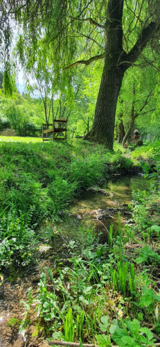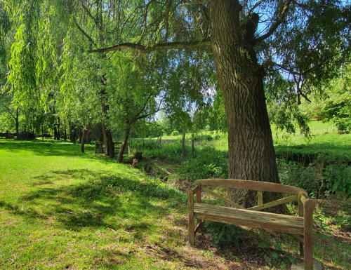 Der wertvolle alte Baumbestand spendet wohltuenden Schatten und das "Jungfernbächlein" schafft ein freundliches, erfrischendes Landschaftsbild.