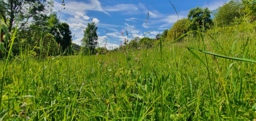 Die üppigen Wiesensind Balsam für pflastermüde Hundepfoten.