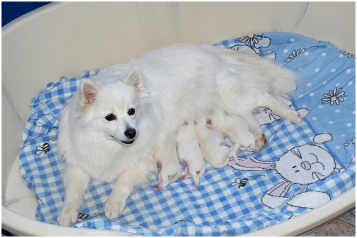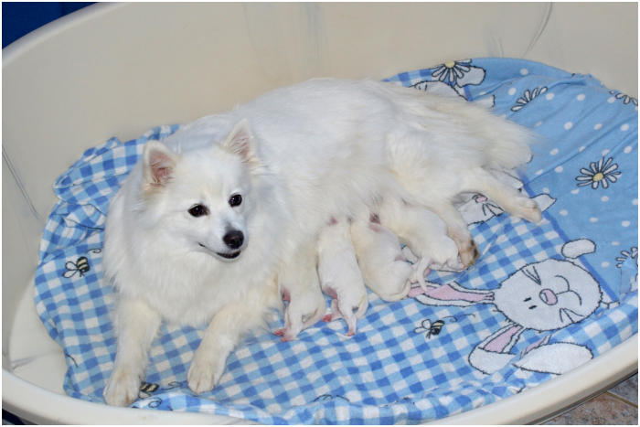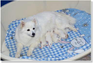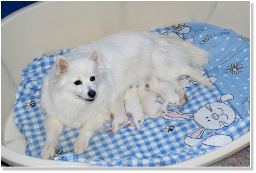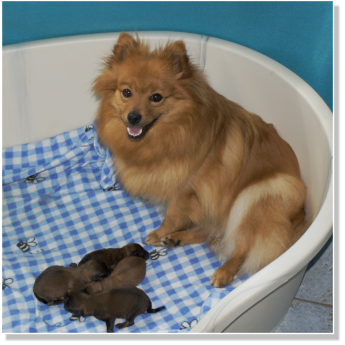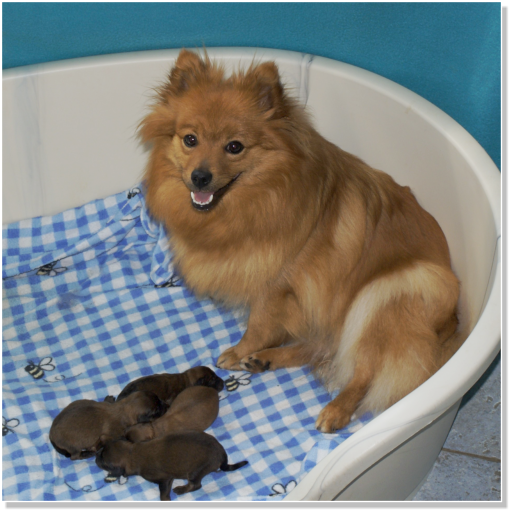 Thalia am Jungfernbachmit ihren 4 kräftigen Welpen.Es sind 3 Rüden und eine Hündin,sie sind am 06.05.2025 geboren. Vater des Wurfes ist der RüdeAragon von Frau Pape-Mond.